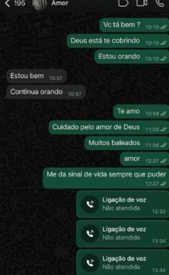 Te amo. Cuidado, pelo amor de Deus. Muitos baleados. Amor, me dá sinal de vida sempre que puder”, escreveu.