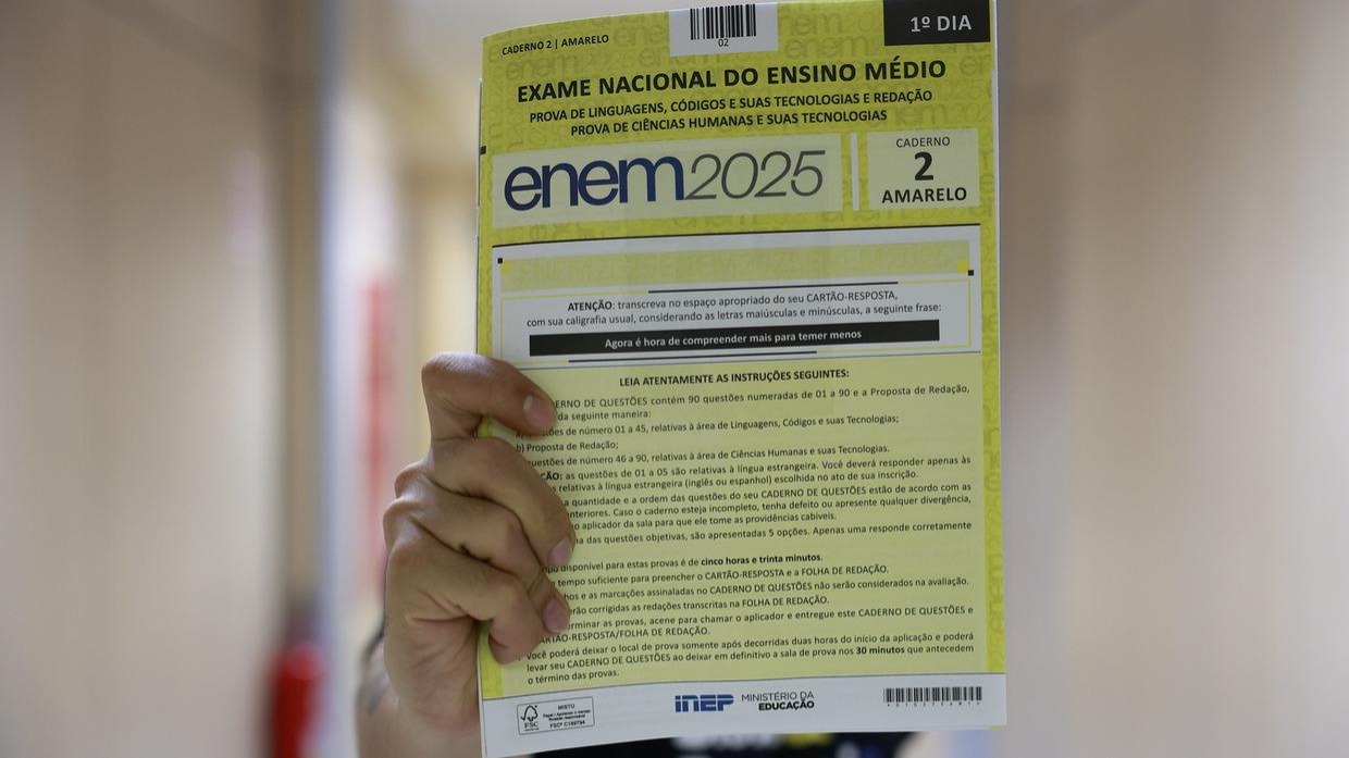 Três questões do Enem 2025 foram anuladas pelo Instituto Nacional de Estudos e Pesquisas Educacionais Anísio Teixeira (Inep) após suspeita de vazamento por um cursinho pré-vestibular no Ceará. A Polícia Federal será acionada para investigar o caso.