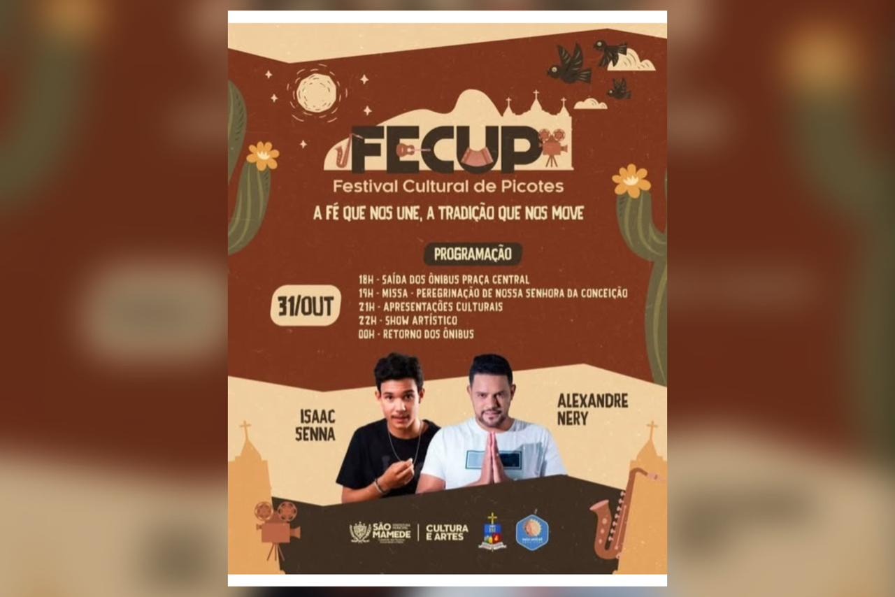 O Sertão da Paraíba vai celebrar, cantar e se emocionar nesta sexta-feira (31) com mais uma edição do FECUP, Festival Cultural de Picotes, em São Mamede. Com o tema “A fé que nos une, a tradição que nos move”, o evento promete reunir moradores, visitantes e devotos em uma noite marcada por música, cultura popular e religiosidade.