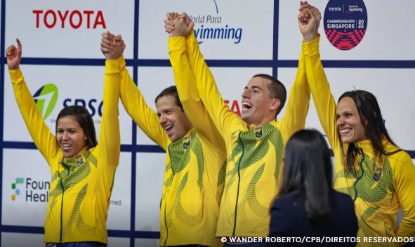Com direito a um recorde mundial, o Brasil conquistou, ontem, quarta-feira (24), mais seis medalhas (dois ouros, três pratas e um bronze) no Mundial de natação paralímpica que está sendo disputado em Singapura.