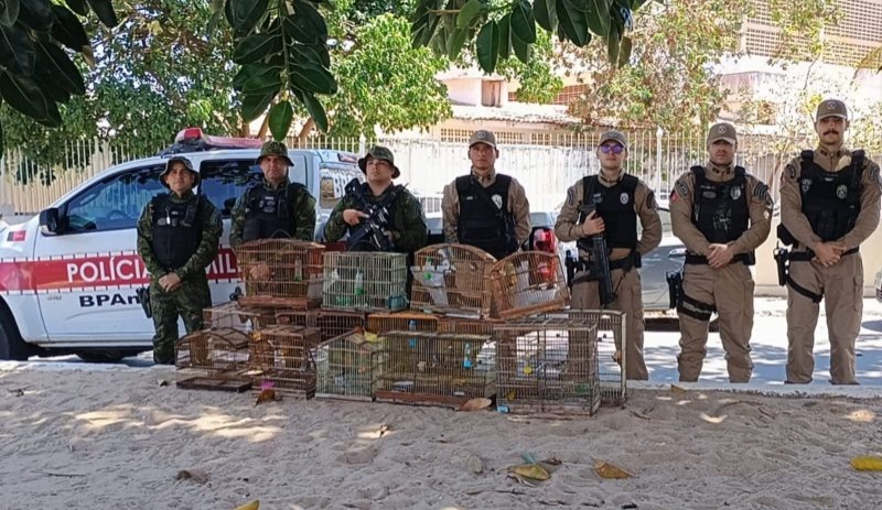 Na residência foram resgatadas 14 aves silvestres que estavam sendo mantidas em cativeiro, bem como apreendida uma quantidade de maconha.