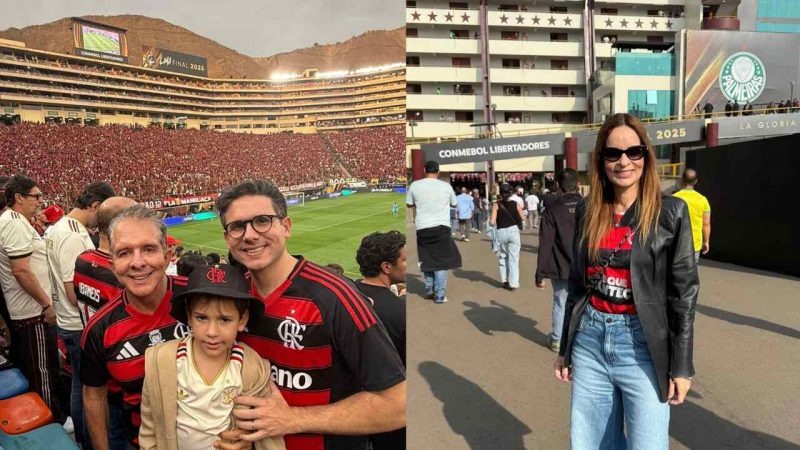 O presidente da Câmara dos Deputados, Hugo Motta (Republicanos), o filho, o prefeito de Patos e seu pai, Nabor Wanderley (Republicanos), e a senadora Daniella Ribeiro (PP) marcaram presença na final da Copa Libertadores entre Flamengo e Palmeiras nesse sábado (29). Os paraibanos viram de perto o tetracampeonato da equipe rubro-negra no estádio Monumental de Lima, no Peru.
