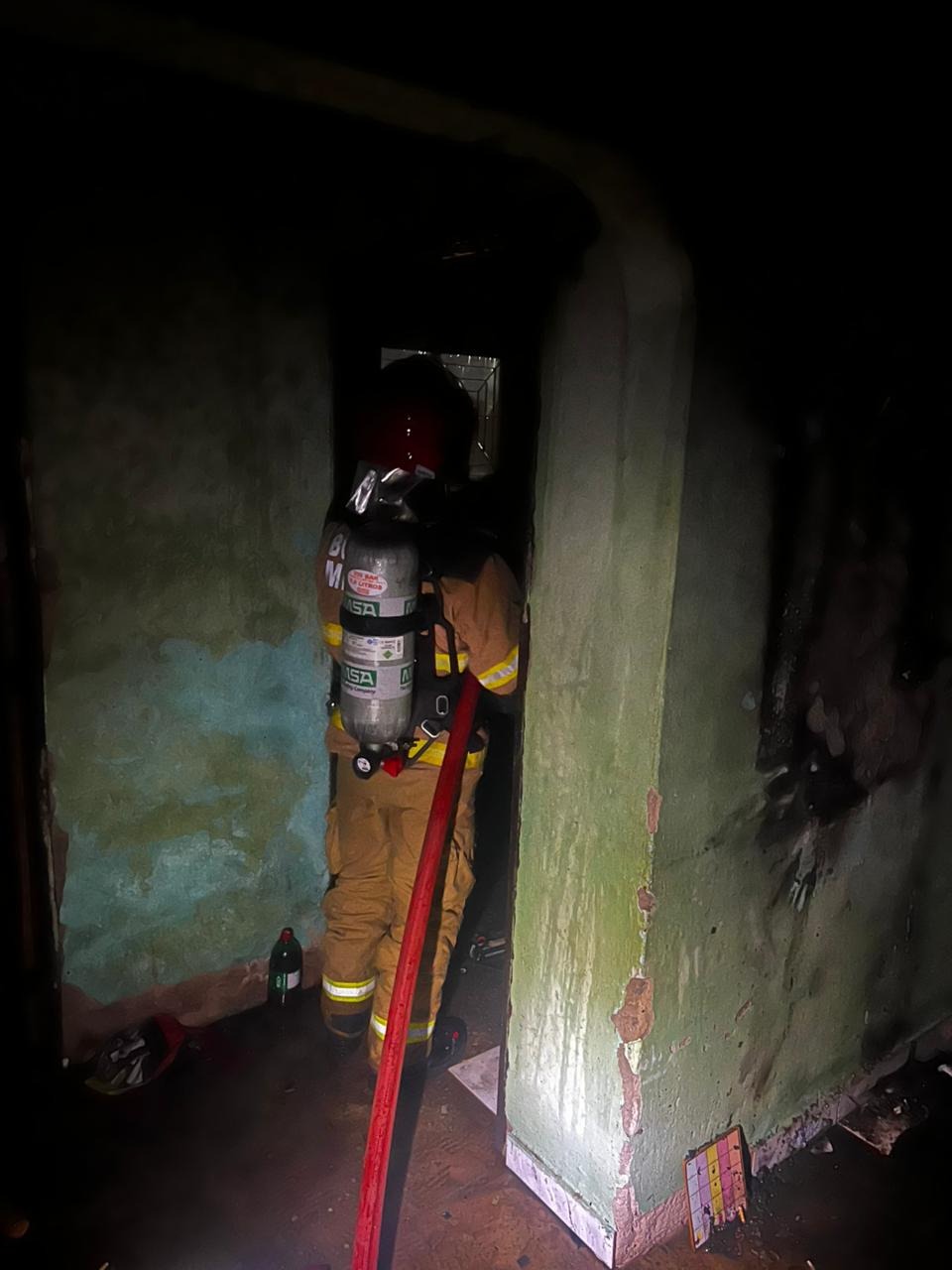 Equipes do 4º Batalhão de Bombeiro Militar foram acionadas e enviaram quatro viaturas para o local. Ao chegarem, os militares encontraram o imóvel tomado pelas chamas e precisaram abrir acesso à residência para realizar o combate direto ao fogo.