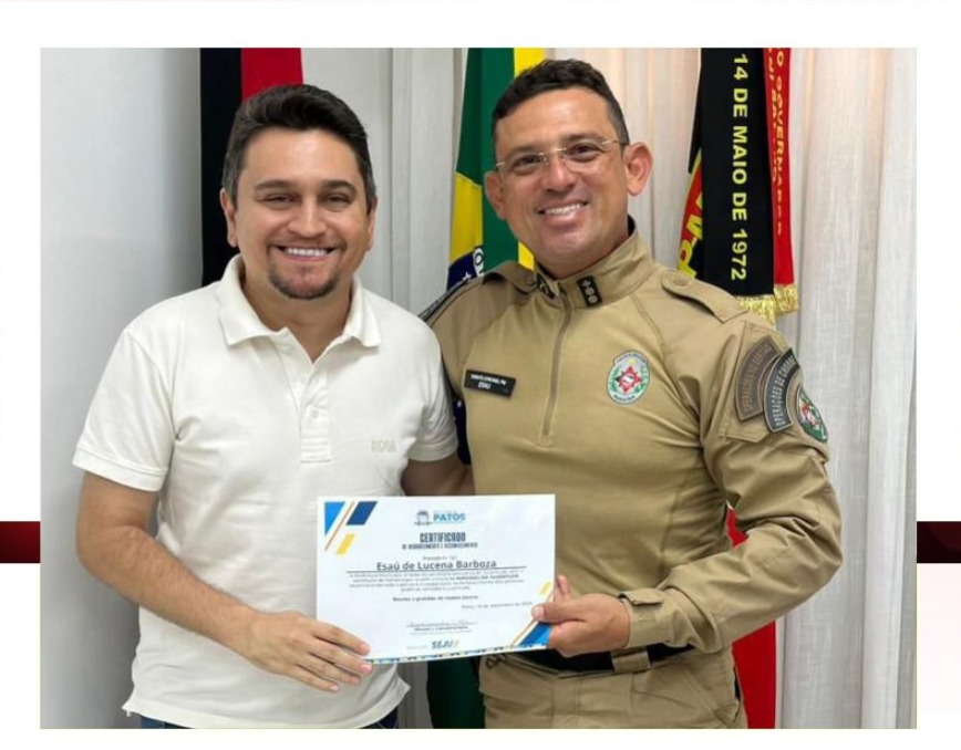 O ponto central da reunião foi a entrega de um Certificado de Agradecimento e Reconhecimento ao comandante do batalhão, tenente-coronel Esaú, concedido pela Prefeitura de Patos.