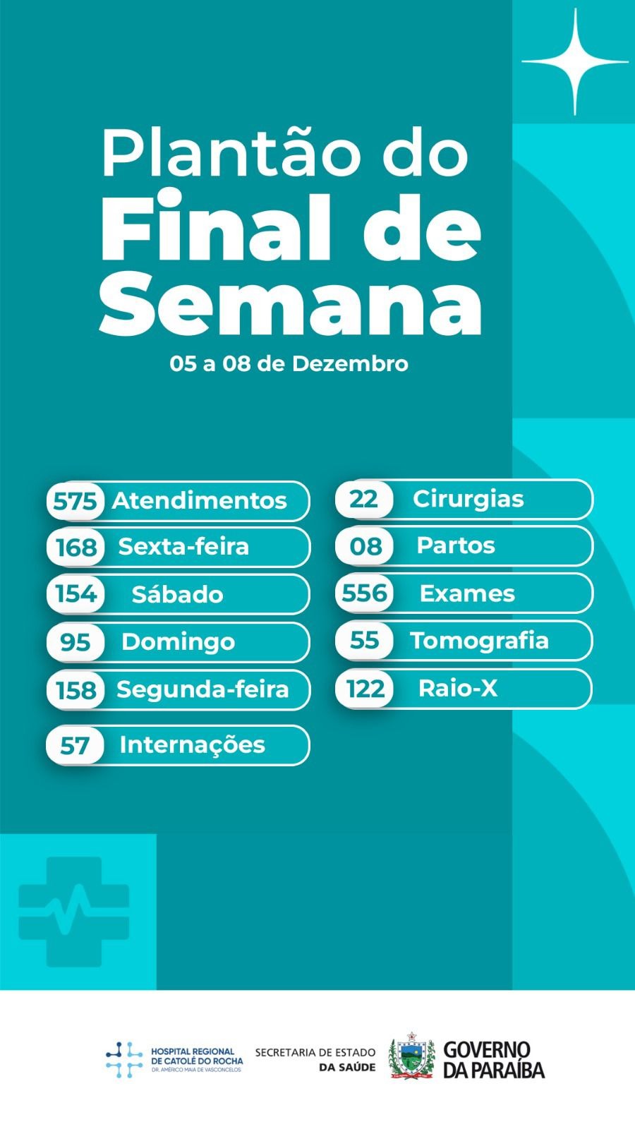 Entre a sexta-feira (5) e o feriado da segunda-feira (8), a Urgência e Emergência do Complexo Hospitalar Regional Deputado Janduhy Carneiro (CHRDJC), em Patos, registrou 395 atendimentos. No mesmo período, a unidade, que integra a rede estadual de saúde, realizou 51 cirurgias, sendo 45 eletivas e seis de urgência.