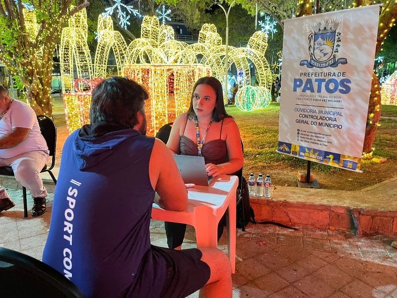A Secretária da Controladoria Geral do Município de Patos, Mayra Fernandes, reforça que a Ouvidoria Itinerante edição final de ano está na praça Edvaldo Mota, nesta quarta-feira, dia 10 de dezembro, a partir das 19h.