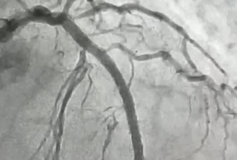 Para possibilitar a abertura da artéria, a equipe utilizou a aterectomia rotacional, técnica que funciona como uma microfuradeira capaz de desgastar e desobstruir placas de cálcio muito rígidas. Em seguida, com o auxílio do ultrassom intravascular, foi possível medir com precisão a extensão da lesão e determinar o tamanho ideal dos dispositivos a serem implantados. Após a preparação do vaso, foram colocados dois stents farmacológicos, completando o processo de revascularização”, explicou o cardiologista.