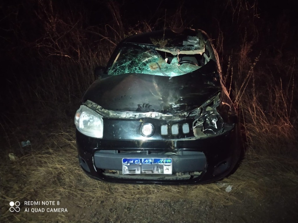 Um animal solto na pista provocou um grave acidente de trânsito na noite dessa sexta-feira (19), por volta das 20h40, no km 10,7 da BR-361, em Patos, no Sertão da Paraíba. Segundo a Polícia Rodoviária Federal (PRF), a ocorrência envolveu o atropelamento de um bovino, seguido de saída de pista, tombamento e queda de ocupantes, deixando três pessoas feridas.