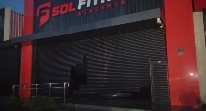 Há imagens também de outros estragos em portão de academia, placas caídas e vidros de uma concessionária de motos também danificados no bairro do Salgadinho.