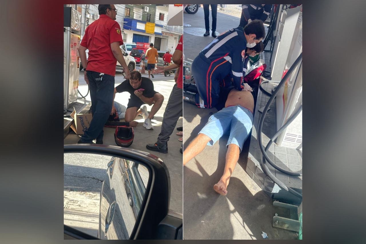 Um homem passou mal e caiu na tarde desta segunda-feira (2) em um posto de combustível localizado ao lado da Praça Getúlio Vargas, no centro de Patos.