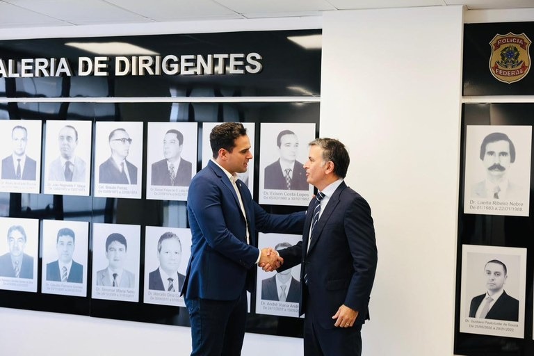 Na sede da Polícia Federal, Lucas Ribeiro foi recebido pelo superintendente regional, delegado Carlos Henrique Sousa, com quem tratou sobre as ações conjuntas de segurança e o fortalecimento das parcerias no enfrentamento do crime organizado.