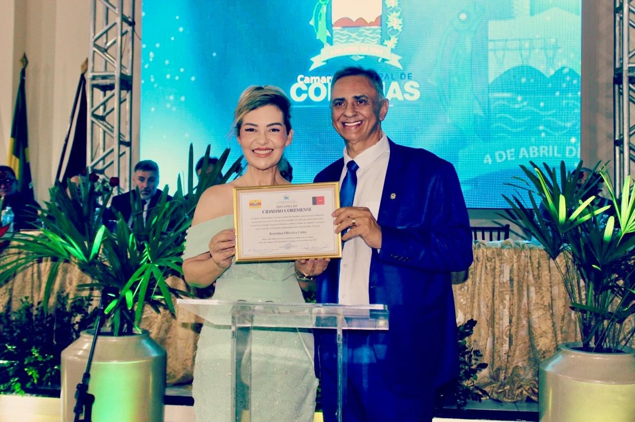 Os onze vereadores de Coremas aprovaram, por unanimidade, a propositura do vereador e presidente da Câmara Municipal de Coremas, Ednaldo Pereira de Oliveira, que concedeu o Título de Cidadã Honorária do Município de Coremas a Fisioterapeuta e Enfermeira, Josielma Oliveira. A agraciada é diretora-geral do Hospital Estevam Fernandes desde 2011 e vem realizando desde então, na condição de gestora, um grande trabalho, reconhecido pela população de Coremas, na assistência hospitalar pública. A solenidade de outorga do título aconteceu na última sexta-feira (31). Josielma é natural de Campina Grande e mora em Coremas desde 2009.