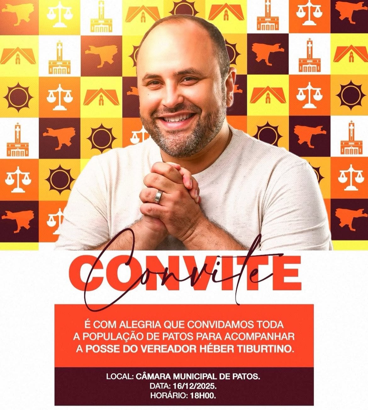 A Câmara Municipal de Patos realiza nesta terça-feira (16) a posse do vereador Héber Tiburtino (PP), que assume a vaga após decisão Tribunal Regional Eleitoral da Paraíba (TRE-PB) que cassou os votos da chapa do MDB nas eleições municipais.